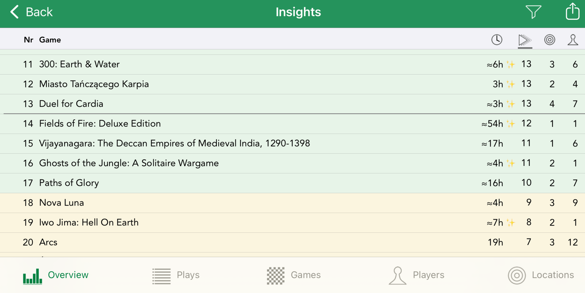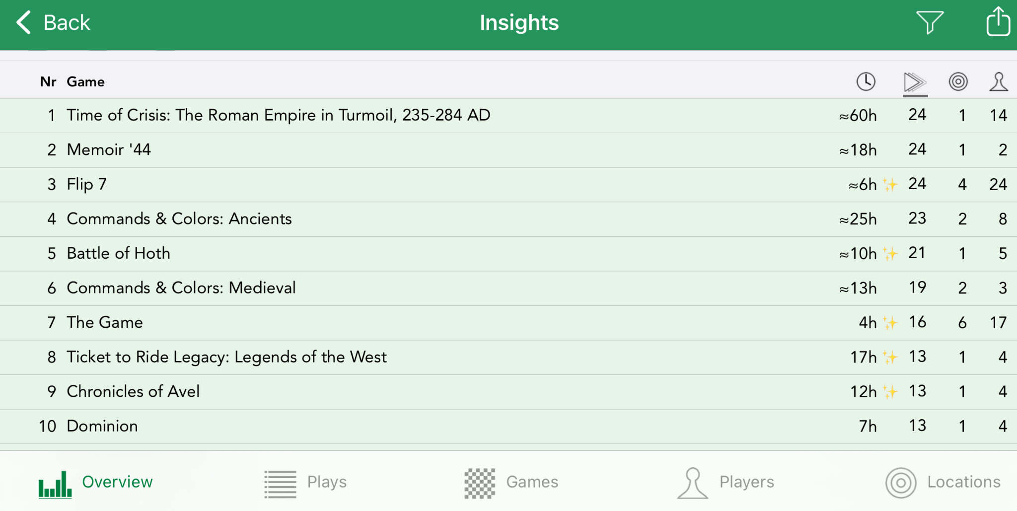 And now to the most important and interesting statistic! The BGStats divides all your played games into a couple of categories: