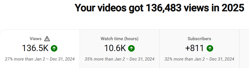 This was definitely one of the fastest-growing areas for me last year. I enjoy talking about games, presenting them, playing them, and reporting on them, also in video form. The growth was very encouraging, with increases of around 30 percent in both views and watch time. I also reached the milestone of 3,500