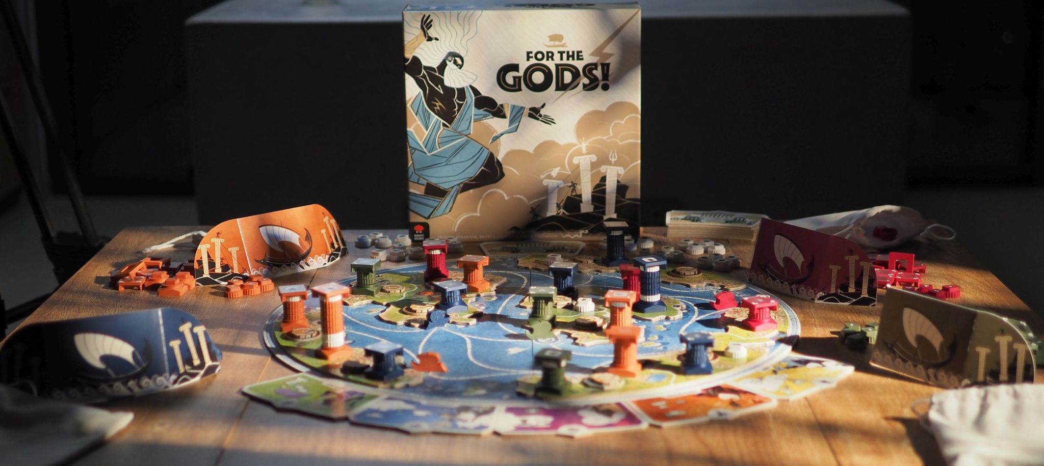 Michal: Now, please elaborate a bit about the key game components and how many players it accommodates?David:** For the Gods! is designed for 2–4 players and plays in about 45 minutes. The game features a central board representing an ancient Greek archipelago, along with player ships, screens, bags, and a large set of stones.
