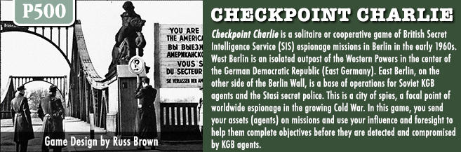 Date: February 23, 2026Author: Grant I love a different style and focus of wargame. A game that takes a look at an important but somewhat obscure or rarely addressed topic such as espionage or intelligence. And this past month, GMT Games announced such a game in Checkpoint Charlie, which is a solo or cooperative game focused on SIS espionage missions in Berlin in the 1960’s designed by Russell Brown. I have reached out to Russell and he was more than willing to provide some great insight into his design. *Keep in mind that the design is still undergoing playtesting and development and that any details or component pictures shared in this interview may change prior to final publication as they enter the art department. Grant: Russ welcome to our blog. First off please tell us a little about yourself. What are your hobbies? What’s your day job? Russell: Happy to be here to talk about Checkpoint Charlie! My wife and I live in a lovely town called Waukesha, just outside Milwaukee. I retired a little early from a career as a software developer and went back to the University of Wisconsin to study creative writing. That led to my main hobby, which is writing science fiction novels. On most days, I leave my house, walk to downtown Waukesha, and write at a local university library or public library or down at my favorite coffee shop. Basically, I’m livin’ the dream. Grant: What motivated you to break into game design? What have you enjoyed most about the experience thus far? Russell: I’ve done a lot of freelance writing for tabletop RPG publishers, but what got me interested in historical game design was solitaire bots. A couple years ago, I found a bot for Command and Colors: Ancients created by Paulo Miranda, and I had a blast playing against it. I expanded it for Samurai Battles and had fun with that. I decided to create a full bot, with no decisions made by the player, for one of my favorite games, Here I Stand. It took months, but I ended up with deck-based bots for each power that had their own personality and did some basic negotiating with the players and the other bots. In my last game against them, as France, I came in fourth. After that, I made full bots for Talon and Combat Commander: Europe. The next step was to develop a solitaire game from scratch, and the idea of a game about espionage in Berlin had been bouncing around in my head for decades. What have I enjoyed most about the experience? The answer is strange, but I think I actually miss being a programmer. Game development uses those same parts of my brain. It’s very different than writing novels. Grant: What is your upcoming game Checkpoint Charlie about? Russell: Checkpoint Charlie is about managing British Secret Intelligence Service espionage missions in early 1960’s Berlin. You play as a case officer, a mastermind if you will, not an individual agent. It’s inspired as much by the fictional works of authors like John le Carré as it is by accounts of actual espionage operations. If you’re familiar with le Carré’s novels, you play as George Smiley, not one of his field agents. Grant: What games have you used as inspiration for your design? Russell: That’s a tough one. I struggled to find a game mechanic that evokes the feel I want, a lack of complete control over agents and the situation. I’ve probably been more inspired by computer games with simultaneous movement, maybe something like RimWorld, than by any particular boardgame. Grant: What is important to model or include in a game about the British Secret Intelligence Service? Russell: The first question is, who is the player supposed to be? I didn’t want to model the experience of an individual field agent. What fascinated me most about accounts of these missions, including faithful fictional accounts, is the way all the assets work together and adapt to a changing situation. I want the player to experience that, all within the context of secrecy, of trying to not be discovered and compromised. To fully experience that, the player has to be a case officer, a person leading and coordinating the mission. What that means, however, is that the player doesn’t have full control of every individual action taken by every agent. Grant: What challenges did the subject cause for the design? How have you overcome them? Russell: I’ll limit my answer to what I think were the two biggest challenges. The first was creating a game in which the player doesn’t have complete control, but still has enough agency to successfully complete a tough mission and feel like they did something amazing. We’re working on an article about this for the Inside GMT blog, but the solution mostly comes down to the card draw movement mechanic. Most of the movement and actions that take place on the map of Berlin happen based on which card the player chooses from the draw area. That one choice triggers the movement of up to five assets and KGB agents and also affects where surveillance and intel appear on the map. The second challenge was making a game about missions taking place in secret over hours or days, with fictional agents, feel at least somewhat historical. I hope we accomplished this by using actual locations on the map and including historical events to anchor the missions in this period. Grant: What type of missions do players undertake? Russell: I hope Checkpoint Charlie will be perceived as a “toolkit” game. For me that means there are enough components there, and enough interacting mechanics to be able to create many different missions that feel unique. Specifically, there are missions that are basically pick up and deliver with a KGB agent on your tail, missions where you set a trap for a KGB agent by planting a piece of tempting intelligence, a mission where you have to cross the Berlin Wall to deliver instructions to a dissident Russian scientist, and a mission where you have to protect a Soviet defector and get him safely to the airport with identifica